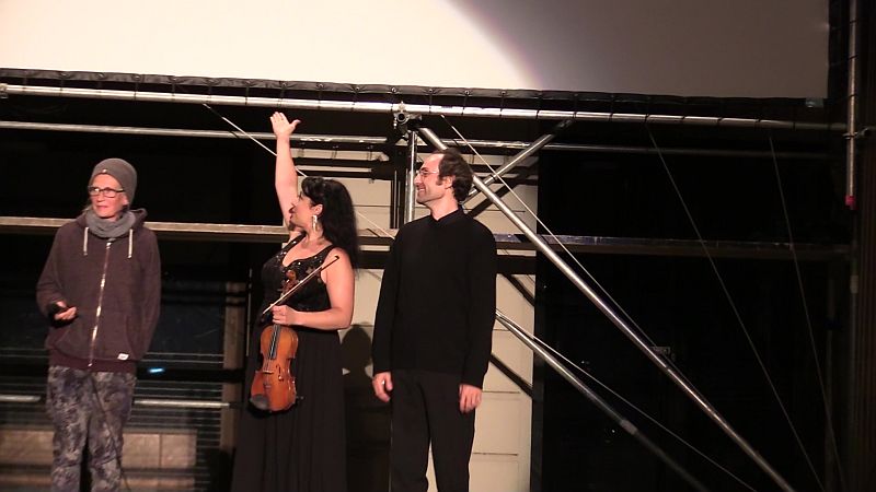 DIE WEISSE HÖLLE VOM PIZ PALÜ ist aber mit 2 Stunden und 15 Minuten Laufzeit ein ziemlicher Klopper, der mir bei früheren Sichtungen immer zu lang vorkam. Spätestens wenn sie die dritte Nacht in in Folge in der Wand ausharren und Ernst Udet seine endlosen Loopings fliegt, hatte der Film meine Geduld überbeansprucht. Da zeigte sich hier in Bonn mal wieder, was eine gute Musikbegleitung ausmachen kann. Sabrina Zimmermann (Geige) und Mark Pogolski (Flügel) haben es geschafft, mit der von Zimmermann komponierten Musik (die wieder Motive ihres Vaters Aljoscha Zimmermann aufgreift, die dieser für andere Bergfilme von Arnold Fanck komponiert hat) die Längen des Films zu verkürzen. Stetig treibend und aufwühlend, konnte durch Musik die Spannung gehalten werden und die vielen Szenen mit Beinahe-Abstürzen und Menschen die am Seil über dem Abgrund baumeln wurden mit zusätzlicher Dramatik aufgeladen, so das ich einige Male wirklich wirklich kurz die Luft angehalten habe. Die Vorführung verfehlte auch die Wirkung beim Publikum nicht, was dieses mit stehenden Ovationen bekundete.