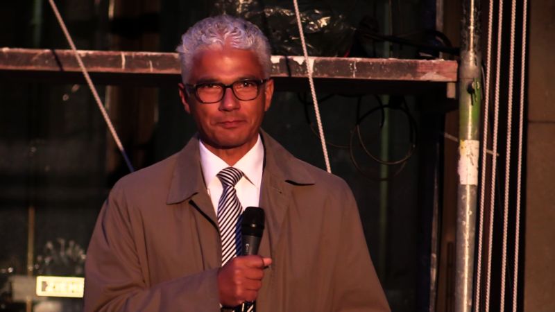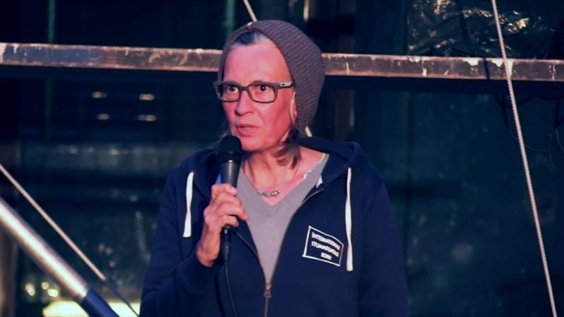 Da es wohl den ganzen Tag immer wieder Regenschauer gegeben hatte, war der Hof zur Eröffnung leider nicht voll besetzt, aber trotzdem noch gut besucht. Das Stammpublikum lässt sich von etwas Wetter nicht abschrecken, und der harte Kern erst recht nicht. Von den 35 Festivals habe ich zwar leider nur 5 selbst erlebt, aber ich kann mich an Vorstellungen im strömenden Regen erinnern, wo trotzdem hunderte Besucher geblieben sind. Und wer nicht an seine Regenjacke gedacht hat, kann im Eingangsbereich einen Poncho erwerben. Es gibt also keine Ausreden und die hatte man auch gar nicht nötig, denn das Wetter blieb uns gewogen, mal von ein paar verirrten Tropfen kurz vor Schluss abgesehen. Nach einer kurzen Begrüßung durch den Bonner Bürgermeister Ashok-Alexander Sridharan ergriffen die Festivalleiter Sigrid Limprecht und Stefan Drössler nacheinander das Wort.
